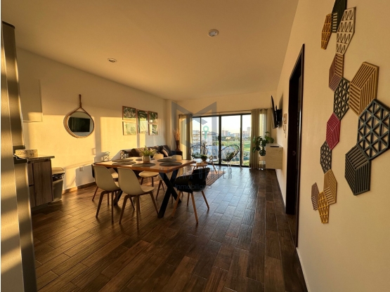 El departamento está amueblado y se ubica en 3 piso; Cuenta con espacio amplio de sala con mini Split, comedor, balcón privado con hermosa vista al campo de golf, cocina integral equipada, recámara principal con closet, mini Split, cama King size y baño completo privado, recámara secundaria con closet, 2 camas individuales y mini Split, 1 baño completo para el resto del departamento y cuarto de lavado con centro de lavado